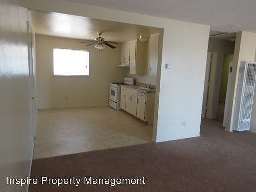 Cute home with 1 Car Garage and Refrigerator Walking distance to shops! Open kitchen with fridge included and newer stove. Long 1 car attached garage with natural gas laundry hookups. Front and backyard is fully fenced and secure. Newer carpet throughout. Decent sized bedrooms. Large Living Room. Pets negotiable upon approval and with additional pet deposit. Security Deposit $750 minimum **Call today to schedule an appointment! This one won't last! 760-790-7044 ** Directions: From Hwy 62, head south on Hillview Rd. Turn right onto Division Street. Home is the pink house on the left. Inspire Property Management Broker #01702999 (RLNE2182014)