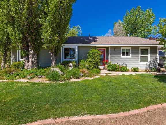 This beautifully renovated country home sits on 2.5 acres with amazing mountain views! Entire perimeter fenced with white vinyl fencing, automatic gated entrance and even a fenced corral area for the animals! Brand new 42' X 42' Metal Barn on concrete slab with plenty of room for a RV! Enjoy the gorgeous landscape with mature trees (including fruit trees) while relaxing in the 8 person hot tub and have lunch under the covered pergola. Includes greenhouse, garden/patio shed and raised planter boxes. Low maintenance siding including extra installation, new windows, and a pellet stove to keep you warm. Contact agent for list of additional upgrades, so many we don't have enough room to list them all! Come see this home today!
