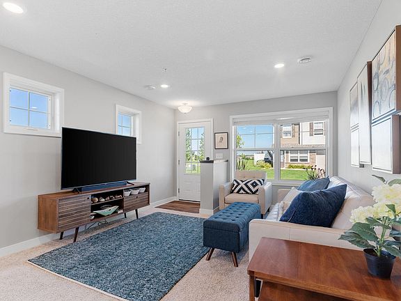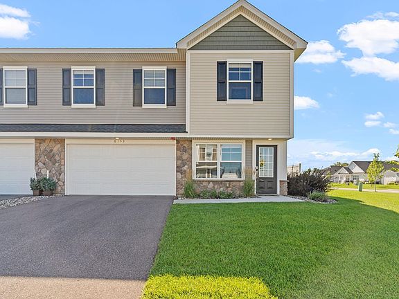 Here is the chance you've been waiting for! An affordable entry into Calorosa, a beautiful new townhome community in peaceful Cottage Grove. This immaculate townhome is an end/corner unit facing south-west for GREAT natural sun light. At two and a half years old, everything in this unit feels and looks new! From stainless steel appliances to quartz counter tops and dark wood luxury vinyl plank flooring, this property has a modern Scandinavian color palette that you will love. The primary bedroom suite is impressively sized with great ambient sunlight, a walk-in closet with window, and a modern, clean private bathroom. The upstairs laundry and attached garage complete your ease of living in this maintenance free townhome. Dont miss the massive open green spaces, trails, and patio areas around the property as well as a gorgeous party room and pool. Schedule a showing today. This property is under-priced and ready for you!