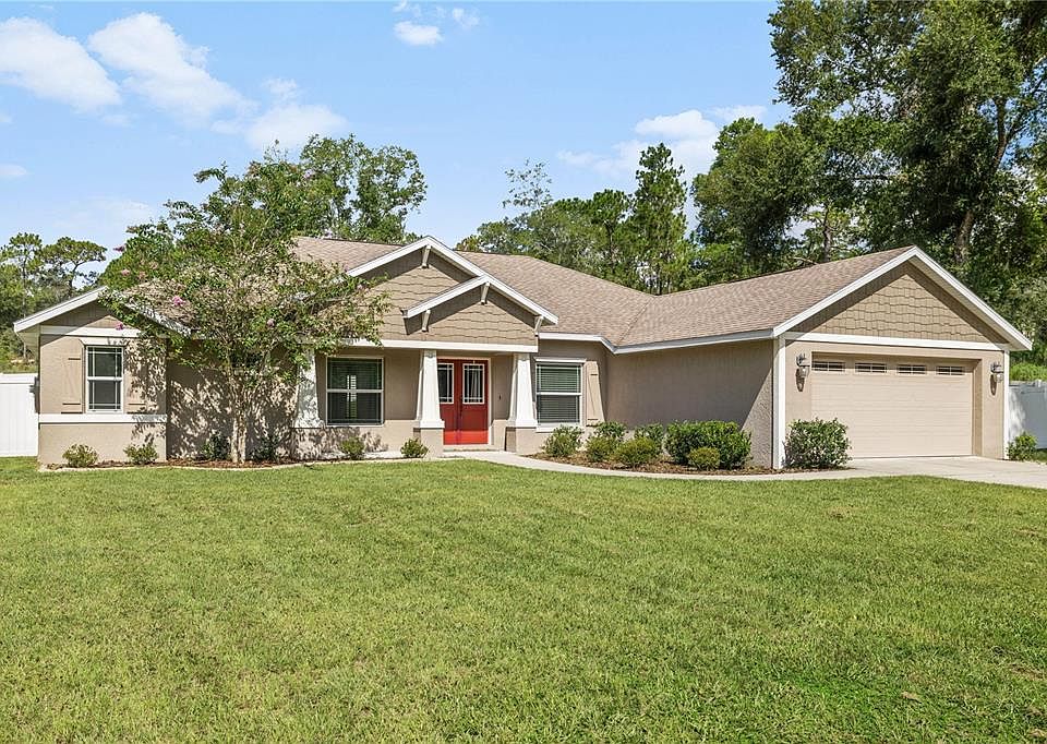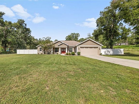FANTASTIC PRICE IMPROVEMENT!!!! NEWER HOME! Situated on 2.75 acres, Craftsman-style-stunning 4 bedroom / 2-bathroom home with privacy fencing, 2 car attached garage and extended living space on the screened in lanai. The home has a large open yard and it a short drive from the Croom Wildlife Management Area with over 20,000 acres for hiking, bicycling and horseback riding. The open floor plan features a great room, formal dining room and an eat in kitchen with breakfast nook. All new energy efficient features throughout. Triple sliders open to the large screened in lanai with a relaxing view of the private large backyard. The kitchen features stainless steel appliances, Granite countertops w/ travertine backsplash, 42-inch cabinets with crown molding, and spectacular lighting. Open floor plan allows great space for entertaining large gatherings. The primary bedroom offers 2 walk-in closets, a custom ceiling with crown molding and accent lighting. The ensuite bathroom has dual sinks, walk-in shower, and large garden tub. Very convenient to I-75 & Hwy 50. Please bring your buyer with the highest expectations- this home IS A MUST SEE -it will not disappoint! GO and show!!!!