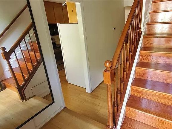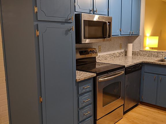 A beautiful townhome in a tree-lined, quiet neighborhood. Brand new granite countertops, and brand new carpet on the second floor. Freshly painted blue kitchen cabinets. Glossy solid wood steps greet visitors as they enter the front door and a big living room creates a great entertaining space. The sliding glass doors step out onto a large outside deck. Gas heat guarantees warm winter nights. Washer/dryer, fridge, stove all convey with the home. Double sinks in both bathrooms with upgraded curved shower rods. Master BR has a large his/hers closet. Two reserved parking spaces and visitors' parking spaces available. Renter is responsible for all utilities. Up to 2 dogs allowed - $30/month per dog. No cats. Pet deposit is included with the rent deposit. A refundable deposit and first month's rent are due 7 days before the move-in date. A non-refundable application fee of $50 is due at the time of signing. Both full bathrooms are upstairs. There is not a bathroom on the first floor. Tenant(s) must be okay with stairs, as there are stairs up to the front door and both bathrooms are on the second floor. Month-to-month rent is available for $1300/month.
