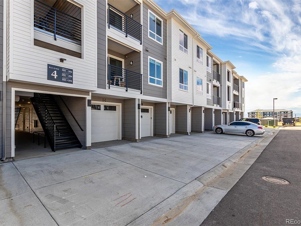 READY NOW - Brand new condo with extra-deep garage, driveway parking and no neighbors above! This light and bright unit features our sleek and modern Colorado Complete package including beautiful quartz countertops, soft-close white cabinets, stainless steel appliances (including refrigerator), full sized front-loading washer and dryer, and high quality LVP flooring throughout. Large kitchen island seats 4-5 and features oversized stainless steel sink and semi-professional Kohler faucet. Brushed nickel hardware and fixtures add to the contemporary feel. Oversized subway tile in both baths and dual lighted mirrors in the spacious primary bath. This unit is move-in ready including blinds, air conditioning, Navien tankless water hearter, Kwikset Smartcode deadbolt and more. Easy access to E-470, I-70 and DIA. Take advantage of the great financing incentives available through our affiliated lender and get into a brand-new home for under $360,000! Visit www.lokalhomes.com for more information. Photos are an example, not the actual unit. Buyer shall be responsible for verifying property taxes as there is currently no available tax information for the units at the assessor's website.