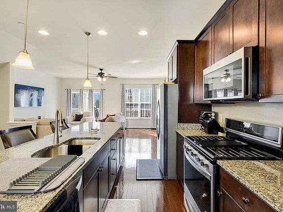 BEST VALUE in Jefferson Place. 4 years young, 3 bedroom 2 full and 2 half bath, 2030 sqft TH will be available in the end of July. Showing starts July 8th. An Air Scrubber was installed this year to improve the air condition. Entry-level family room with QLED TV and professionally installed surround sound system. Two-car garage with a SCREEN SLIDE DOOR, perfect for workout/entertainment/outdoor activities. On the main level, the rich cabinetry & oversized countertops in the centrally located kitchen defines dining, kitchen and living area. Spacious deck perfect for outdoor entertaining with an open and unobstructed view. Upstairs is the bedroom level. It offers a spacious primary suite with walk-in closet and double sink vanity, two generous bedrooms, a full bathroom, and the laundry room. This property is conveniently about 3 miles to Downtown Frederick and minutes to Westview Shopping Center, Ballinger Creek Park, I-70, and I-270. The community offers pool, gym, tennis court, playground, and more. Monthly rent $2,750. Small pets will be considered at $75/pet/month. Maximum 2 pets. Security Deposit, the first and last month rent is due at signing. Minimum Credit score 680, minimum annual income 90K, minimum 12 months lease. Owner pays HOA fee. Tenants pays all utilities and renter insurance is required.