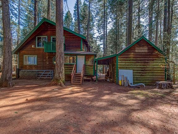 #1324 Nestled among the tall pines in upper Magalia, this large cabin style home offers a wonderful mountain atmosphere! This spacious 2 bedroom 2 bath home has large loft with a closet providing a great area for a guest space or office. As you approach this fantastic mountain home you find a newly constructed front porch, circular driveway and a large detached garage with tons of storage and 2 covered areas on either side. Inside you're greeted by two-story beamed ceilings in the living room and a wood-burning stove perfect for the cooler mountain weather. ALL OF THE WALLPAPER HAS RECENTLY BEEN REMOVED!!! The kitchen has a wonderfully unique nook and a fantastic built-in eating area. Upstairs you'll find the massive master suite with walk-in closet, dual sink and walk-in shower. There's also a balcony off of the master bedroom! On almost half an acre, this mountain home has a ton of potential to offer.