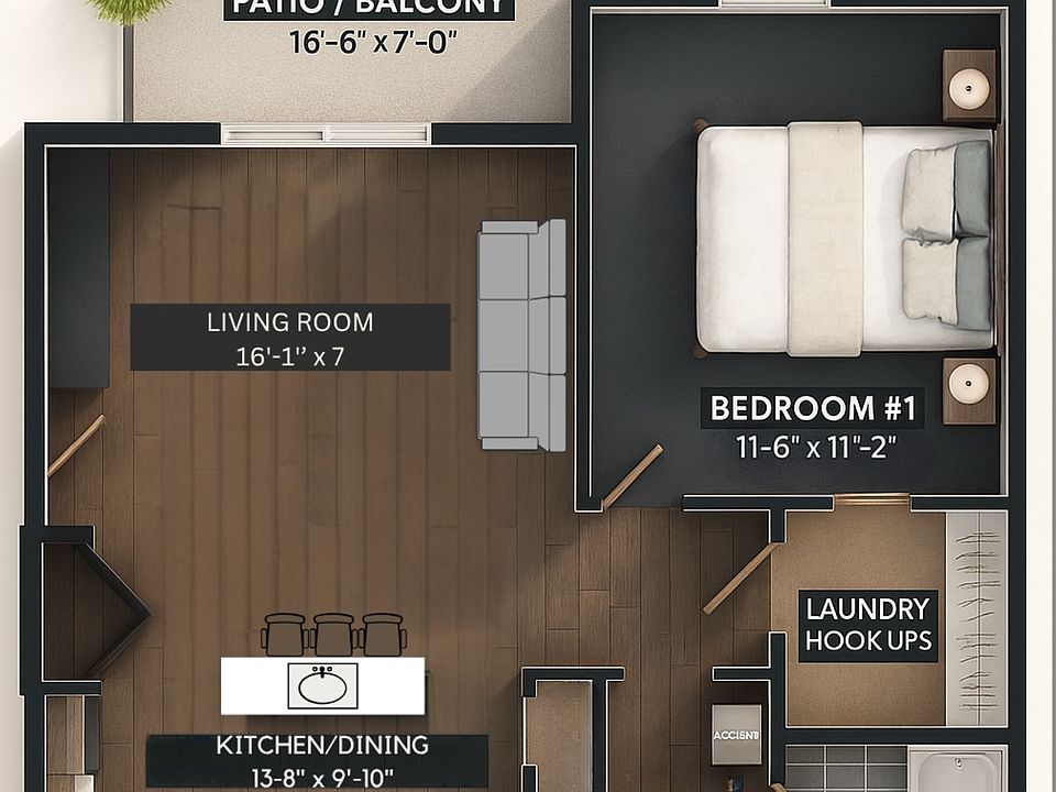 Brand new units with a modern touch! Above/below kitchen counter lighting, ample storage, walk-in closets, and enclosed laundry room. This unit has a private balcony. Contact us today to be the first resident to this unit!