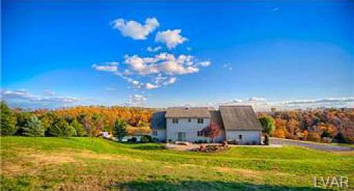 Buyers now have a CHANCE to own a ONE-OF-A-KIND custom built QUALITY CONTEMPORARY home in a picturesque setting atop a beautiful hillside minutes from all LEHIGH VALLEY hotspots. You cannot find a better home for ENTERTAINING, offering an In-GROUND POOL, WET-BAR with wine storage & 2 beer taps, walk out FINISHED LOWER LEVEL recreation room amidst it's 3400+ Sq/FT. There is also unfinished space with rough plumbing above 3CAR GARAGE for potential additional square footage. Current owner has spent over $35K in upgrades to the home. The ACREAGE is 2.82 and it feels like a PRIVATE retreat every time you come home. The kitchen is gorgeous with HARDWOOD throughout & home has a 1st FLOOR MASTER SUITE w/walkout to BALCONY overlooking PANORAMIC VIEWS. The home boasts a SOLID OAK STAIRCASE, & 3 sets of sliding walkout doors to DECK. Jack & Jill BR's with full bath separation on 2nd floor, OPEN FLOOR PLAN on 1st floor, just a FABULOUS PROPERTY. Make a showing APPT. today, home should sell fast!!