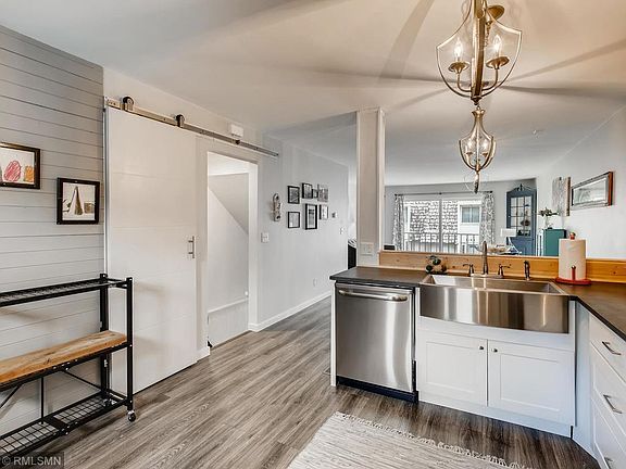 Beautifully updated townhouse is minutes from downtown with access to Basset Creek. This stunningproperty is move-in ready and has all new flooring(Pergo on main and upper floors/LVT in lower), an openconcept main level, custom ceilings, updated light fixtures, and gigantic closets in both bedrooms.Pella doors and windows. The lower level walks out to a private paved patio, and there is a communitypool. From a barn door to custom vanities in the bathrooms, this home has character and then some!
