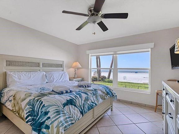Enjoy unobstructed views of the Gulf of Mexico and the white sand of Siesta Key Beach from the 1st floor of this tastefully decorated one bedroom, one bath apartment with tile throughout. Enjoy morning coffee and stunning sunsets on the lanai every day! Newly updated fully equipped kitchen. The property offers one of the largest pools on Siesta Key. Come in, unpack and relax! Siesta Key Beach has been voted #1 beach TWICE! Walk to Crescent Beach, restaurants and shops, with Siesta Key Village just a short drive north on the key.