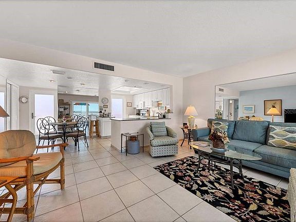 Experience breathtaking, unobstructed views of the sparkling Gulf of Mexico and the pristine shores of Crescent Beach from the spacious 3rd-floor lanai of this beautifully appointed two-bedroom, two-bathroom beachfront apartment. Perfectly designed for comfort and relaxation, this well-maintained unit features a fully equipped kitchen with all the essentials needed to prepare everything from casual beachside snacks to gourmet meals. The open-concept living area flows seamlessly onto the private lanai, where you can unwind with a drink in hand as you listen to the gentle waves and watch the sunset paint the sky with vibrant hues. Whether you're sipping your morning coffee or enjoying an evening meal, the lanai provides an ideal setting with its panoramic views of the white sandy beach and turquoise waters just steps away.