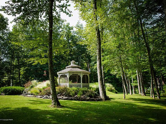 Nestled away on a private 6.23 acres, as you drive down your gated driveway, you will find your piece of paradise. Winner of the 2007 Pocono Builder's Association for Architecture, you will see that no detail has been overlooked. This home has been lovingly cared for, and maintained in pristine condition. Some of the many features include: 4 bedrooms, (2 with their own en suite bathrooms) 3.5 bathrooms, 2 staircases, 3 car garage with heat, stone patio and walkways, beautiful gazebo, hardwood flooring, upgraded kitchen with a generous sized island and a breakfast nook, living room with propane fireplace, family room with a vaulted ceiling, and a dining room open to the parlor. Whole house generator is included, as well as the Wood Master 4400 which is a secondary heat source. This is what you have been waiting for, and this is what you have worked towards. Your own sanctuary.
