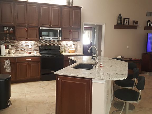 Buyer's financing fell through, so back on the market! Quick possession possible. Kitchen and appliances updated in 2014. Carpet replaced with dark wood floors. Caged pool and spa with updated heater. Also features outdoor cooking space, shower and pool bath. Lving and dining area plus family room with woodburning fireplace. Garage door is oversized opening for large vehicles. Master has two walk-in closets and master bath has a fully jetted step in tub. Call 941-993-7237 for an appointment to see it or if you have questions. No realtors, please.