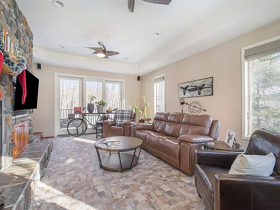 Spectacular Northern Michigan home located in Harbor Springs. Stunning stone and timber façade into the light and bright interior with fine detailing and sitting on a landscaped, private, wooded lot, there is nothing NOT to love. The large kitchen features granite countertops, ample cupboards, beautiful mosaic backsplash, and open concept with the dining room. A step down into the living room with a large stone fireplace and new stone flooring creates a cozy living space. The main floor master bedroom boasts vaulted ceilings, a large picture window, a walk-in closet, and an en-suite bath with dual sinks and walk-in shower. Access the partially covered back deck from the master bedroom, dining room, or living room to move into a tranquil space complete with low maintenance Trex decking, freshly treated wood ceiling and ceiling fan. Taking the stairway down to the lower level, you are sure to notice the gorgeous, custom railings and full-size bar made with logs from Michigan's Upper Peninsula. The lower level features high ceilings and a lot of natural light. The bar opens to a family room with access to the backyard. 2 bedrooms with large windows share a hall bathroom. A huge unfinished room currently used as a workout room, could be more potential living/storage space with a access door to the backyard. The home is setup with new efficient forced air, dual-zone heating for the upper and lower levels. Located just mile to the groomed snowmobile trails and 2.5 miles to the entrance of Highlands at Harbor Springs for skiing.