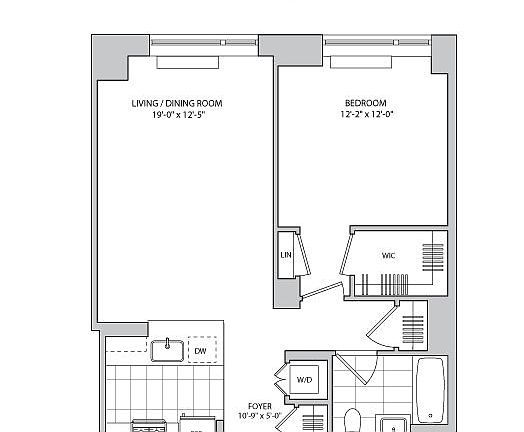 Great 1 bedroom with loads of closets including a giant walk-in and linen closet. This apartment features over-sized windows with views of the Manhattan skyline, an open gourmet kitchen with stainless steel appliances, Caesarstone quartz counters, and an eating bar and an in-unit washer/dryer.