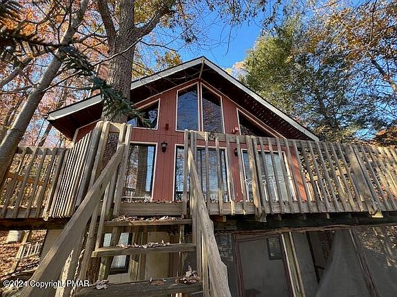 Please submit all Highest and Best Offers prior to 5 PM 11/23/24. Cute Lakefront Chalet with stunning lake view on Monroe Lake. Three levels with bedroom on 2 levels and a loft. This is a diamond in the rough, get a great deal and make it your own. This is one of the ''You Know You're In The Mountains'' rustic lake chalets. 15 minutes to Shawnee skiing, close to restaurants and shopping. I've fished this lake (had fun) and your family will enjoy the sandy community beach and kids play area. Low dues.