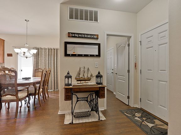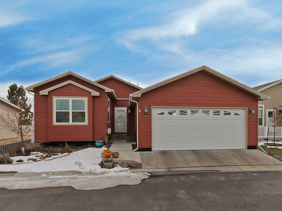 UPGRADES that really do make this home BETTER THAN NEW! Built in 2016, the Seller removed the carpet & installed Pergo Outlast+ Premium Laminate Flooring throughout(bedrooms & baths too)! They replaced the builder grade appliances with Samsung Black Stainless, Double Oven & Matching Washer & Dryer. They fenced the yard with 27' concrete patio, 6 foot privacy fence & double door shed. They built in garage shelving, added parking paved w/black granite rock, repainted both the interior & exterior & added exterior lighting. This home is located on a quiet cul-de-sac, has 1566 sqft, 9' ceilings, a large dining & kitchen space with access to the backyard, elegant tray ceiling in living room, double-tier kitchen Island with 5 bar stools and 42" cabinets w/tile backsplash. 2-car Garage with insulated door, and rear door to backyard. Prairie Greens is a Land Lease community. Clubhouse with kitchen, fitness center and outdoor pool included in the land lease ($625/mth).