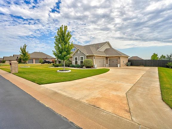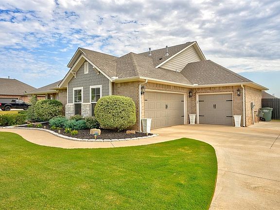 Welcome to this stunning one-level craftsman meets modern farmhouse, better than new home in Edmond School District. Located on a meticulously maintained 1/2 acre with an incredible backyard oasis, complete with an extended pergola, gorgeous outdoor fireplace, and beautiful mature trees. The oversized front porch is yet another living space in its own with two large spaces to relax and enjoy the morning sunrise. Step inside to the immaculate interior with 4 bedrooms and 2 1/2 bathrooms, a large living area and two dining areas. Wood-like tile floors throughout the main living space and hallways. The gorgeous kitchen has abundant cabinet and counter space, stainless appliances, quartz countertops and a walk-in pantry. In the primary suite, you will enjoy a spacious bedroom, spa-like bathroom and a gigantic closet for your organizing dreams! There is a door in the closet that leads to the 3rd car garage that has made a great home gym, complete with a storm shelter. The closet also leads to the laundry room and mudroom, then the powder bath. This split floorplan includes three more bedrooms and a full bathroom on the other side of the house. Full of natural light, energy efficient, modern finishes, extremely well cared for, lots of upgrades added, and efficiently laid-out. What more could you ask for? How about a huge, fully-fenced lot with gorgeous landscaping in a quiet country neighborhood in top rated Edmond Schools! You will not be disappointed when you pull up to this amazing home!