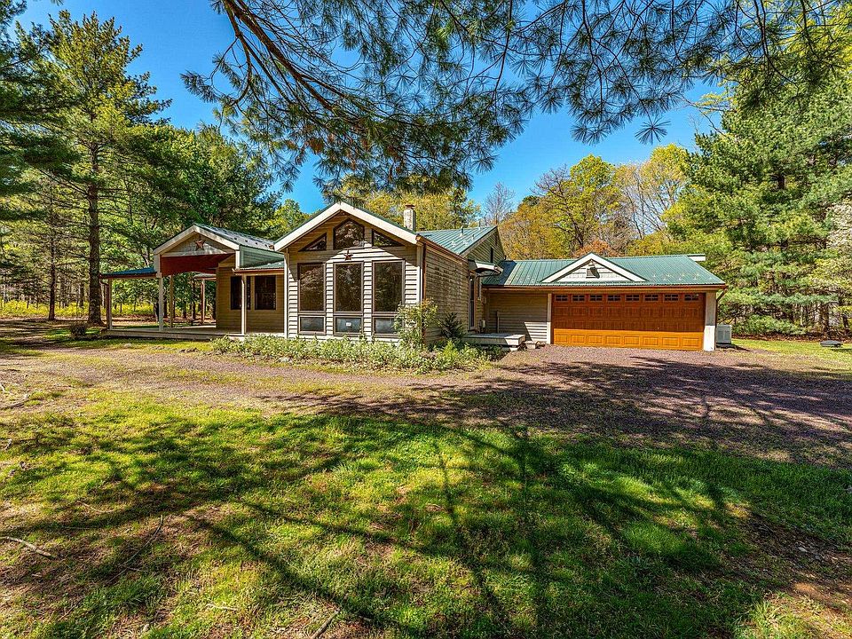 This is your opportunity to own a custom build home on 5 acres. From the moment you drive up to the home you are welcomed by the uniqueness of the exterior elevation. From the metal roof, tall windows and wraparound driveway. This private sanctuary offers an attached 2 car garage and a detached 2 car garage perfect for anyone who is a car enthusiast or handyman. There is also a Generac generator, newer roof, and newer carpeting in the home. Don't let the number of bedrooms deter you, this home feels bigger than it appears with an English style basement, a main living area and a 1/2 story with 2 Bedroom and 1 Bathroom. I can just envision the BBQ's for family and friends being held with the Massive wrap around porch and manicured back yard.