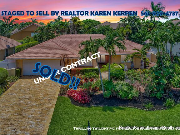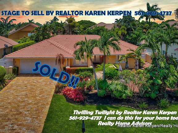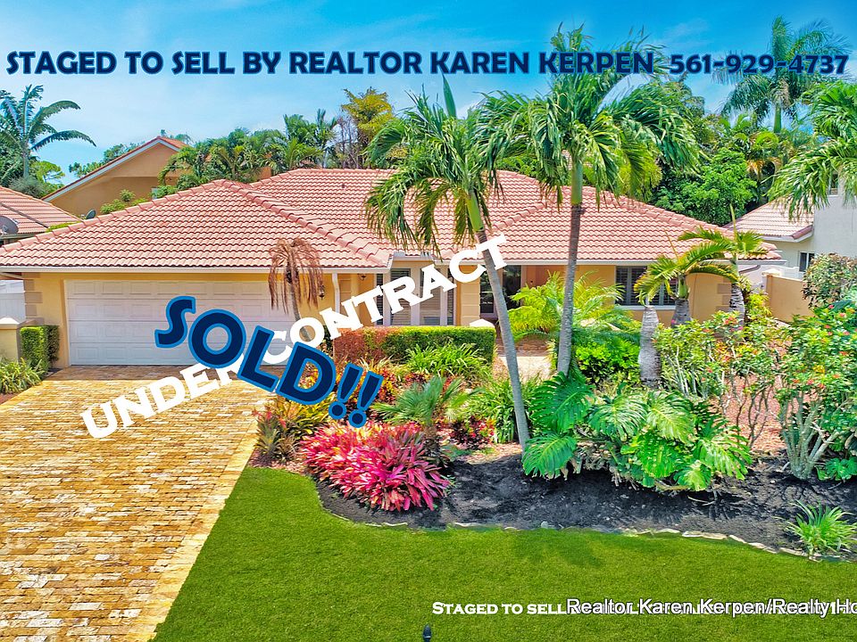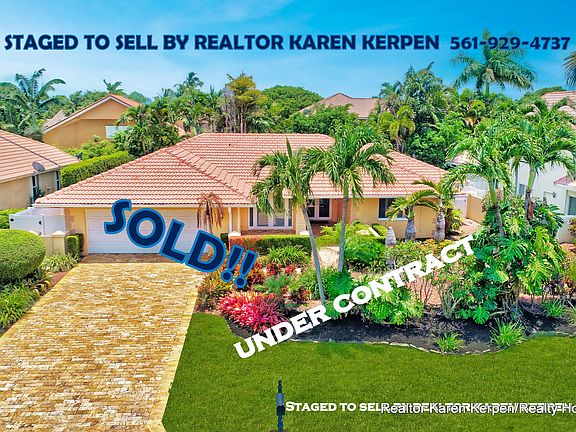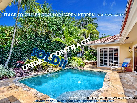 Staged to Sell by Realtor Karen Kerpen with Realty Home Advisors. Spectacular renovated 3 bedroom/3 bath pool home in Boca Del Mar's gated upscale community of Cloisters. Uniqueness, Style, Function, Privacy, Tranquility & Location define this property. This Home Has Been Updated from Floor to Ceiling as You Find from Designers on HGTV. Travertine driveway, Hurricane impact glass throughout including French doors, sliders, and windows. Newer S-Tile roof from 2006. Lush landscaping surrounds this property with a private tropical oasis in your private backyard. Saltwater heated pool and separate jacuzzi spa have natural stone/rock surround and it feels like your own private resort where you can enjoy the solitude and seclusion or have a huge party! Perfect for Entertaining or Relaxing. Turn on the heat for the pool or spa via remote control. Outdoor heated shower. Travertine pavers throughout backyard and 3 retractable patio awnings. Truly a special backyard/like none you have seen before. High end finishes everywhere. Enter through double front etched French impact doors to your big living room with huge Impact glass sliding doors that feature pool and back yard views. Crown molding throughout, plantation shutters on every window and most doors, LED lighting, plus tile and laminate wood flooring. The dining room has Impact French doors that open to the front courtyard and could easily be a 4th bedroom. Amazing kitchen featuring granite countertops, tumbled marble backsplash, tons of wood cabinets with pull out drawers, a raised granite snack bar, new Bosch dishwasher and so much more Plus it overlooks the enormous family room! All rooms in this home are very spacious. Separate master suite has double impact glass sliders with views of the private resort/tropical oasis backyard, a fabulous updated master bath & his/her closets (the walk-in has built in shelving). Great layout w/a split floor plan where the master bedroom and the 2 guest bedrooms are very separate from each other, so you have a lot of privacy. Two Car Garage w/hurricane garage door. Large inside laundry/utility room. Pet friendly community. All ages. Amazing Schools! Cloisters is a gated community with a low HOA fee of $164 a month. Close to the best shopping, best restaurants, best golf and more!