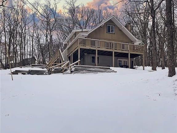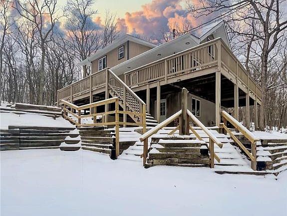 Offered by its original owner, this beautifully crafted mountain-cabin style home captures the sweeping views and timeless serenity of the Poconos. Custom-built with care, it features warm wood finishes, vaulted ceilings, brick fireplace, and picture windows that frame the landscape like art. Whether you're looking for a peaceful retreat or a vacation rental opportunity, this home offers privacy, comfort and flexible uses.