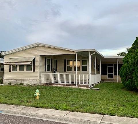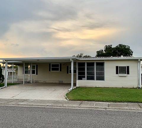 BEAUTIFUL, TURN KEY HOME ON SPACIOUS CORNER LOT IN FOREST LAKE ESTATES. FULLY FURNISHED 2BED 2BATH WITH DEN. This home offers a double car port driveway (21x30), screen room (9x14) and shed (9 1/2 x10). All with decorative non-slip coating. The shed offers overhead storage, window, utility sink, and lots of built-in storage with workbench. The front of the home has a COVERED PATIO overlooking the lake that also has non-slip coating and access to the home's den. As you enter the home from the screen room, you have INDOOR LAUNDRY with cabinets and a pantry. Directly ahead is the large GUEST ROOM (13 1/2 x 10 1/2) This room is carpeted with a window, lighted ceiling fan, walk-in closet with storage, and private access to the main bathroom. The MAIN BATH has a new vanity and raised toilet, with a tub/shower combo (including safety rail) and built in medicine cabinet, vinyl floors and skylight. To the right is the MASTER BEDROOM. This large carpeted room (13x14 1/2) can accommodate a king suite and has a huge walk-in closet (4x12) 2 windows, ceiling fan and double door entry to the owners bath. The ENSUITE has a built-in linen closet, built-in medicine cabinet, spacious counters with tile backsplash, vinyl floors, skylight, and separate walk-in shower with safety rail and raised toilet. To the left of the entry, the home opens up to a FORMAL DINING ROOM. there is a window, built-in lighted hutch, chandelier, and wood laminate floors. The KITCHEN offers a double stainless sink under the window, nice white cabinets and appliances, tile backsplash, vinyl floors, dishwasher, 4 burner stove, refrigerator with ice and water, large pantry and spacious eat-in breakfast nook with bay windows. The LIVING ROOM is carpeted and has lots of entertaining room with beautiful furniture, grandfather clock, organ, roll top desk, 2 windows and a ceiling fan. Next is the cozy DEN with comfortable furniture, tv, loads of windows and access to the outside porch that overlooks the lake. This home also includes a METAL ROOF, NEWER WINDOWS (under 5 years) NEWER A/C (under 4 years) and a WATER SOFTNER. BUYER WILL SAVE APPROXIMATELY $970 BETWEEN NOW AND MAY 1ST ASSUMING GRAND FATER LOT RENT RATE. FOREST LAKE ESTATES IS A 55+ LAND LEASE COMMUNITY. THE MONTHLY LOT RENT FOR THIS HOME includes lawn care, pass through tax, trash, 24 hour gated access and use of all amenities. FOREST LAKE ESTATES FEATURES TWO HEATED POOLS, HEATED SPA, SPACIOUS SUN DECK, VETERAN'S PARK, 2DOG PARKS, TENNIS COURTS, SHUFFLEBOARD COURTS, A BASKETBALL COURT, HORSESHOE PITS, 18 HOLES OF PUTT-PUTT GOLF, STOCKED FISHING LAKE, & DOCKS. THE CLUBHOUSE HAS A DANCE FLOOR, YOGA, & EVENTS. Showings are available via Face-time (live video of property) -OR- scheduled showing by appointment.