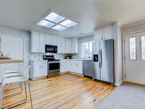 Charming ranch-style home in the Highlands neighborhood in Arvada priced under $400k. Open floor plan on the main level. Kitchen has hardwood floors and newer stainless steel appliances, and a high top counter for eating and/or entertaining. Three bedrooms and one full bathroom upstairs with a cozy living room. The basement is fully finished with a media/play room plus an extra bedroom and bathroom. The laundry room features a large pantry and has plenty of room for storage. The backyard is perfect for entertaining and has a covered patio and options for a garden. Fantastic location and close to restaurants, Westminster shops, grocery stores, and public transportation. Easy access to highways and 20 minutes to downtown. Hurry, this won't last!
