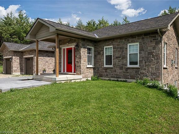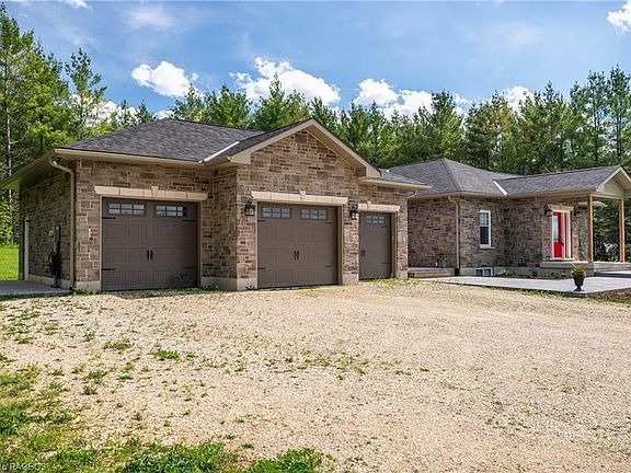 Your dream home nestled on 3.37 acres of tranquility in the heart of West Grey! This exquisite Mulligan home, custom built in 2017, offers unparalleled craftsmanship & exceptional amenities with room for your personal touch! As you step onto the covered front porch & through the foyer, you're welcomed into an open-concept living space with a captivating cathedral ceiling. The gourmet kitchen is a chef's delight, featuring granite countertops, a convenient island, & a generously sized pantry. Three spacious bedrooms provide ample space for your family, with the primary bedroom boasting a walk-in closet, an ensuite featuring a fabulous large glass shower (accessible), & a walk-out to the serene back deck. With three well-appointed bathrooms, this home ensures both convenience & luxury. The basement, with its expansive layout, holds incredible potential, ideal for an in-law suite or a separate living area. The large recreation room, complete with a walk-out to the yard, is perfect for entertaining friends & family. Car enthusiasts will appreciate the three-car insulated garage, easily accessible from the main level & the basement. The large back deck, half covered & half open, beckons you to unwind & enjoy the picturesque views of the sprawling 3.37-acre lot. This property also boasts thoughtful additions, including a rough-in for a generator (with panel & cement pad already installed), a 200-amp electrical panel, HRV system, & rough-in for central vacuum. Stay comfortable year-round with forced air propane heating and take advantage of the owned water heater & iron filter. Located in a peaceful area, yet just a 5-minute drive to Markdale, where you can access all town amenities. Embrace the great outdoors with an array of activities - from Bells Lake & the Markdale Golf and Curling Club to hiking trails, snowmobiling routes, cross-country skiing paths, and ATV trails, & much much more. Your ideal lifestyle awaits in this meticulously designed home!