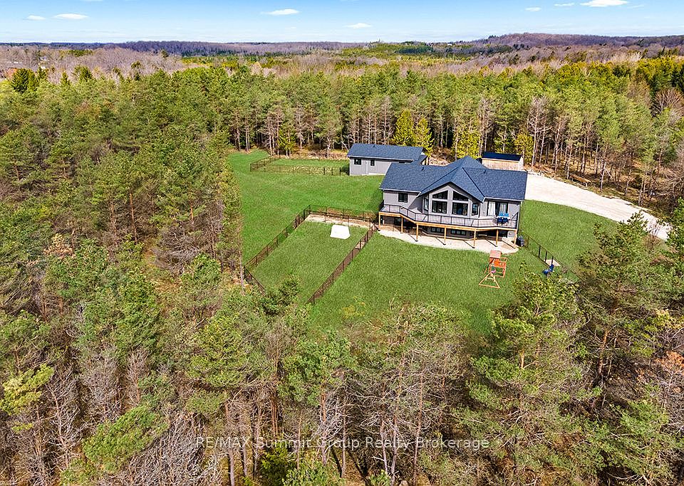Multi-generational living doesn't mean you have to live with each other. This property, on almost 5 acres, gives you two separate living spaces while still keeping everyone connected. The main house is bright and welcoming with large windows and a cathedral ceiling that fills the rooms with natural light. It includes five bedrooms, three full bathrooms, and a finished walkout lower level with a huge rec room, kitchenette/wet bar, four walkouts to the yard, and rough-ins for a fridge, stove, and shower. It's a versatile space, perfect for entertaining, hobbies, or giving teens and guests their own retreat. The kitchen was designed for gathering, with a 15-foot island, porcelain slab counters, deep drawers, a built-in spice rack, and a cooktop with downdraft ventilation. It flows easily into the dining and living areas, making family meals or get-togethers simple. From the primary bedroom, step directly onto the 55-foot deck that overlooks the property, while a spacious mudroom/laundry combo keeps day-to-day living organized. The fully equipped secondary unit is ideal for parents or grandparents, independent adult kids, a home office, or even rental income. Outside, you'll find a private setting that still keeps you close to everything, just minutes from Markdale and a short drive to Beaver Valley Ski Club. There's over half an acre cleared, multiple fenced areas for pets or play, and wide gates for access. Modern features like geothermal heating and cooling, ethernet hookups in the gym and office with excellent internet, and a commercial-grade hot water pressure tank add comfort and peace of mind. This property makes it possible to share life with family while still enjoying your own space. It's the perfect balance of connection and independence.