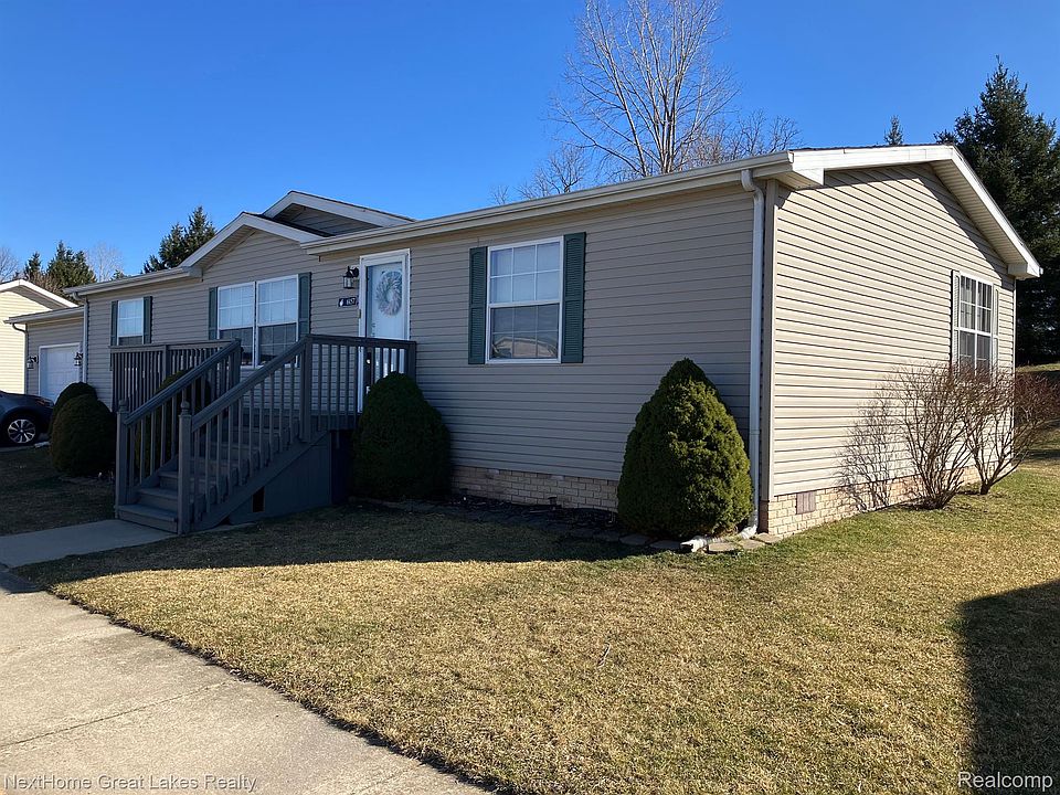 3 Bed, 2 bath, 1300sqft home with a garage in Cider Mill Crossings, Fenton. This home sits on a large large lot with the tree line behind the home. The park has community pool, park/picnic area and basketball court. Spacious master suite with a bath tub, shower and laundry room Open concept kitchen, dining and living room. Central Air and forced air heat. Large front deck and back patio with room to play in the back yard. Minutes to downtown Fenton. 2003 Patriot Homes Model.
