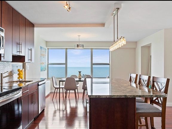 Includes all utilities and WiFi. (Rents furnished/partially furnished only) Come home to stunning views from every room. Grab this rarely available South East Facing 2 bed/2 bath corner unit at El Lago in Edgewater with unobstructed Lake and Sykline views! Approx. 1400 square feet of open concept living - LR and DR, updated kitchen and baths. Freshly painted with beautiful flooring, soaker/spa tub, stainless steel appliances, custom cabinetry, and granite counter tops, large island. Plenty of closets in unit. Balcony overlooks Lake Michigan and unobstructed views of downtown. Minutes from beach, bike paths, red line, great restaurants and Loyola. Rent includes: HEAT/AIR/CABLE/INTERNET/ELECTRIC. Full amenity building with huge sundeck w/ solarium. 24 hour door staff, laundry room, bike room, Fitness center, community room. No smoking. Up to 2 cats allowed, no dog building, no exceptions. $500 admin fee, $300 move in fee to the building. Require renter insurance. Credit score 660+. Parking: wait list for parking at building. Nearby paid options are available. All utilities provided - including WiFi. Furniture rider required. $300 move in fee building fee + $500 admin fee