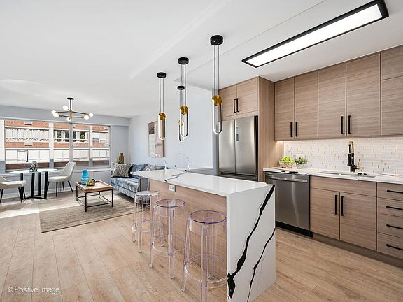 Be the first one to live in this brand new, gut rehabbed, 3 bedroom, corner condo with a balcony. Finishes inside are to the highest standards. Contemporary, soft-close kitchen cabinets with under cabinet LED lighting. Trendy quartz counter-top & breakfast bar with waterfall, USB/C outlet, and its own wine cooler as well as a wireless phone charging station. SS appliances (all) including dishwasher, and a smart range. The living room features a cozy built-in fireplace to accompany your glass of wine during cold Chicagoan winter days. Modern LED lighting throughout the entire unit, including ceiling lighting in all bedrooms and living room. Plenty of closet space, including designer organizers (with interior sensor lighting) in all bedrooms. Bathroom features a walk-in shower with black hexagon floor tiles to match the remaining black finishes, as well as a smart LED sensor mirror which can also play your favorite music to make your shower even more relaxing and enjoyable as well as receive any incoming phone calls. The bathroom also features a heated towel warmer rack to complete the comfort and joy of your shower experience. Building is walking distance from beaches, shopping, parks, fine restaurants, and public transportation. Bus stop conveniently located right outside of the building. Unit is vacant - easy to show. This is a well run building and has a rooftop sun deck, exercise room, and 24 HR super friendly and welcoming door staff. Both maintenance and management are on site. Low assessments and taxes for a 3bed unit. Must see!