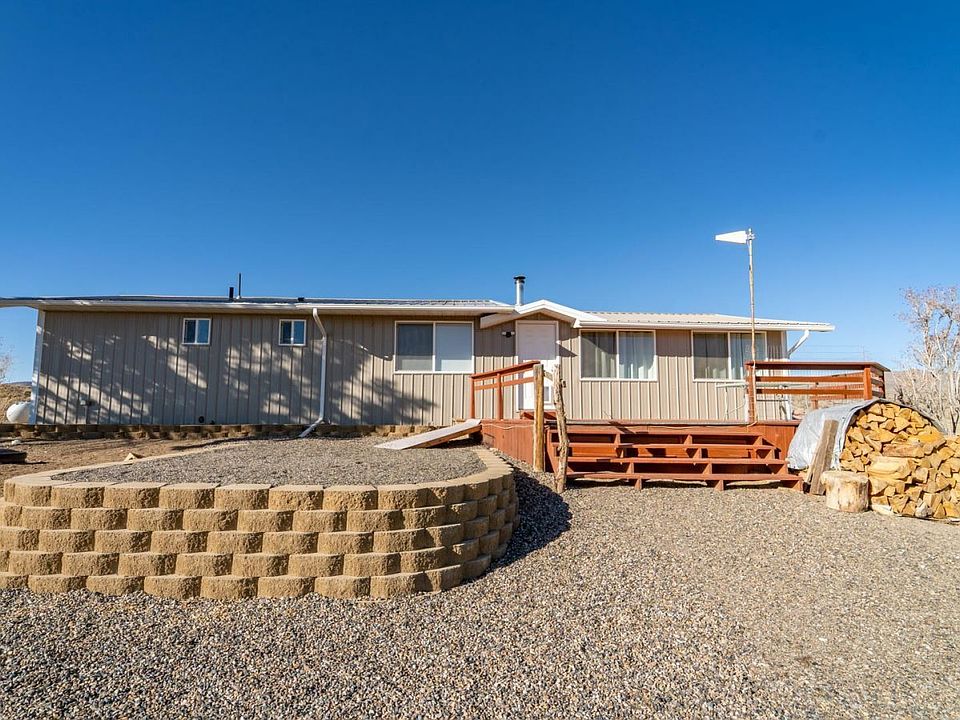 - Exterior Features: Trees, Deck(s) Uncovered, Fenced- Full, Sprinklers- Drip System, View of Mountains, Gutters & Downspouts, Faces: East, Faces: North, Landscaping: Natural, Horses Allowed