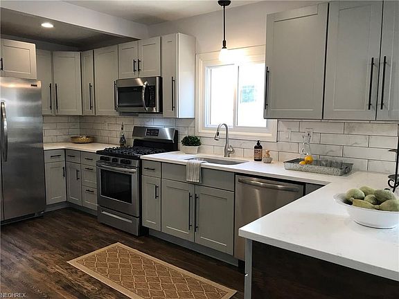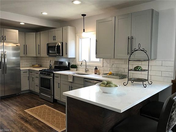 You have seen NOTHING like this in the Parma Circle! Come check out 6157 Stanbury which was remodeled for the 2018 home shopper! The entire first floor has been renovated to give you an open concept plan. The kitchen has brand new cabinets, Quartz counters, stainless steel appliances, floating maple wood shelves and a subway tile backsplash! The breakfast bar splits into the dining room where you have ample seating for hosting a larger parties! The refinished hardwood floors carry you to the family room with a new natural stone fireplace with a cherry wood mantle. The first floor laundry room (YES! first floor laundry room) and a half bathroom and a half bathroom round out the main floor. The second floor boasts 3 bedrooms and a gorgeously remodeled full bath with a double sink. The rare, large third floor area is finished and can be used as additional living space or storage. There's a sun room upstairs that acts as additional living area plus an outdoor balcony. The exterior was freshly painted in 2018, has new gutters, an awesome front porch and a 2 car garage with extra storage. Top it off with a waterproofed basement, double hung Andersen windows and new LED lighting throughout. If you're sick of the small Parma house....this is the place to be! Blink and it's gone, offer and it's yours! Do NOT miss this!