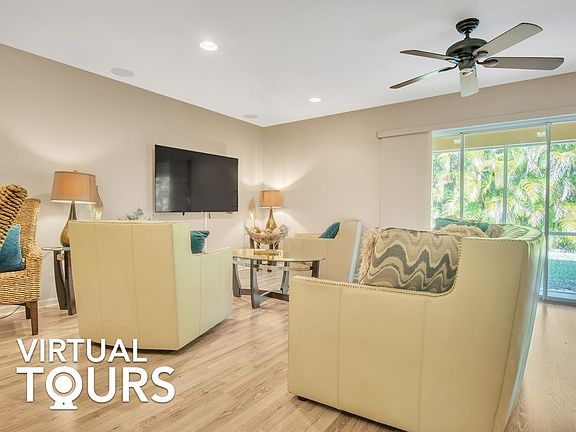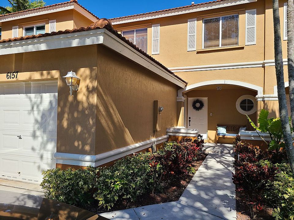 Gated community living in this 3 bd / 2.5 Royal Palm Beach townhouse! Highlights include the open layout, screened-in patio, and amazing community amenities! Tropical landscaping and a covered front porch add great curb appeal, while luxury wood laminate floors and natural light create a bright and airy interior. Cook in the kitchen, equipped with stainless steel appliances, maple wood cabinets, tile backsplash, and a pass through window into the chandelier lit dining room. After eating, relax in the living room, or head out the sliding glass doors to lay out on the covered and screened-in patio, overlooking the lush open lawn and palm trees! Pass a half bath on your way up to the carpeted second floor, where you’ll find the primary suite, complete with a vaulted ceiling, dual sink vanity, and walk-in glass door shower! The two secondary bedrooms are carpeted with ceiling fans, and they have access to the full hallway bath. Forced Air heating. One car garage. The community is full of amenities, including a pool, spa, clubhouse, kid’s playground, gym, and tennis courts! Your HOA fees also cover 24 hr security, landscaping, driveway power washing, and trash removal. Located near shopping, dining, and trails, with easy access to Florida’s Turnpike, I-95, and Palm Beach Int’l Airport! Buyer should verify all information.