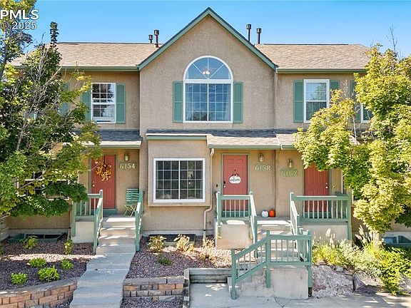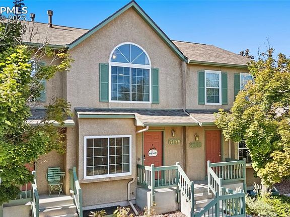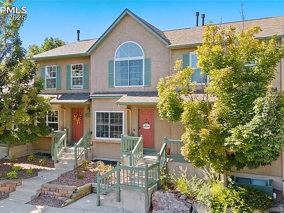 Absolutely charming stucco townhome located on the west side of Colorado Springs in the coveted D-20 school district. LOW HOA DUES! Upon entry, you will find new luxury vinyl flooring throughout main level, a cozy gas fireplace, an updated kitchen with stainless steel appliances, tile countertops and backsplash, and a breakfast bar. Adjoining dining area leads to the fenced rear patio, perfect for grilling or relaxing. The upper level is a true owners retreat and includes a peaceful master suite with vaulted ceilings, ample closet space, and an ensuite bathroom with dual vanity sinks and granite countertops. In addition to the master suite, there is a large loft area with vaulted ceilings and tons of natural light - ideal for a home office, a secondary living/media area, or could even be used as a 3rd bedroom! The basement is fully finished and would be a wonderful, private space for guests or teens, with another spacious family room, a large bedroom and 3/4 bathroom. Well cared for and maintained. New roof in 2024. New sliding glass doors and windows on the main and upper levels. New light fixtures. Central AC. Washer and dryer included. Lovely complex with tons of mature trees. Two assigned parking spaces including one covered spot under a carport. Garages are available for lease on first come, first serve basis. Just steps away from Golden Hills Park and Rockrimmon Open Space. Easy access to nearby trails, parks, shopping and entertainment, and I-25!!