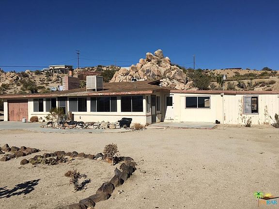 Mid-Century Fixer located on almost 9 acres of pristine, magical, landscape- this wonderful property captures the views and tranquility of the Western Hills Estates area of Yucca Valley, due to its remote location. When standing in the enclosed glass porch and looking out at the Valley and mountains, one is taken back by the sheer beauty of the landscape and magical hillside sunsets. Upon leaving the main house, head south to reach the guest house, which is perched on the hillside among the beautiful rocks and desert landscape. The property is only 2 miles from downtown but cloistered by a field of boulders and accessed by way of a short dirt road- perfect for working artist studios. Artists, including large format sculptors, may legally conduct business on-site on all three parcels completely exempt from oversight and regulation of the Town's normal Home Occupation Permit process. Call it your remote creative space/vacation getaway, and come and re-charge from the busy city lifestyle!