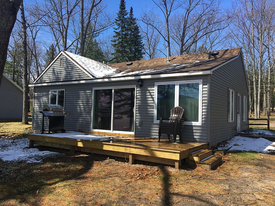 UNIQUE PROPERTY that offers 3 freestanding, fully furnished cottages, garage, boat house, docks and hoist. Cottage #1: The Eagles Nest (the statistics are in this listing). Cottage #2 has two bedrooms and cottage #3 has three bedrooms. Each cottage can sleep 6-8 people. The second and third cottages feature a cozy fieldstone fireplace. The Eagles Nest was totally renovated right down to the studs in 2019. It features an open floor plan with tongue and groove pine interior, metal corrugated ceiling, lovely and resilient Brazilian Pecan wood plank flooring, new kitchen with a concrete bar countertop, new appliances including the dishwasher and a new bathroom. The dining room has a lakeside walk-out to the new deck. It has all new windows, doors and siding. Enjoy all-sports Hubbard Lake and its spring fed 8,800 acres; known for its beauty and crystal clear water. There is wonderful fishing, boating swimming and water sports right out of your front door! The sellers are currently using this property as income property. The Eagles Nest can be rented out year-round. This is an excellent investment opportunity, or it can be used as a family and friends compound. A third option would be residing in the Eagles Nest and renting out the other two cottages for income. Endless possibilities! Cottages cannot be shown when rented.