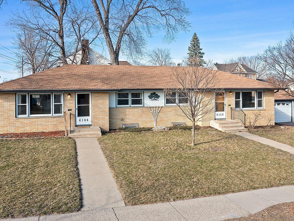 A charming mid-modern rambler duplex on a spacious corner lot, close to various amenities. Living room is flooded with natural light, accentuated by gorgeous hardwood floors that extend seamlessly throughout much of the main level. The main level hosts two generously sized bedrooms. Only steps away, a full shared bathroom awaits. The kitchen boasts original cabinetry, along with an adjoining informal dining space illuminated by an original light fixture. Step outside to the backyard, featuring a newer privacy fence. The expansive lower level family room, & a utility room doubling as a laundry room, offering ample storage space. Convenient detached two-car garage. Within walking distance to Veterans Park, offering a range of recreational amenities. Conveniently located near Minnehaha Falls, MSP Airport, & so much more! Situated on the bus route between Minneapolis & Mall of America, commuting is made effortless, while quick bike rides lead to the scenic beauty of close lakes.