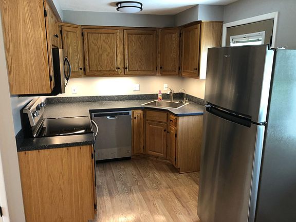 Ranch Duplex for rent. Gas heat central air. Private Attached Garage, Private Deck, and full partly finished basement. New counter tops ,sink RO/drinking water. Remodeled bathroom. Newly remodeled. Stainless steel appliances. Longer lease desirable. Laundry hookup in basement no laundry appliances included. No pets. Water, sewer and trash included in rent. Tenent pay rent +gas and electric.