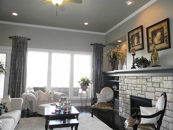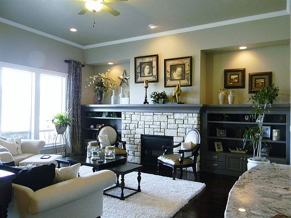 As you enter this this Beautiful 4 bedroom 3 bath home you are invited in with a covered large front patio area. You will notice the 10 ft ceilings throughout the home & 12' in great room area. Hardwood floor in the entry, living room, dining room and kitchen area. Custom Black cabinets to the ceiling with glass and accenting lighting. Marble backsplash accents the granite & stainless steel throughout the kitchen. Custom office area with 5 foot hardwood wainscot & fireplace to warm the evenings. 4th bedroom