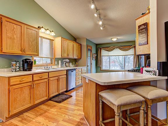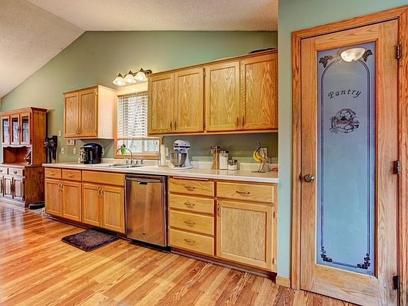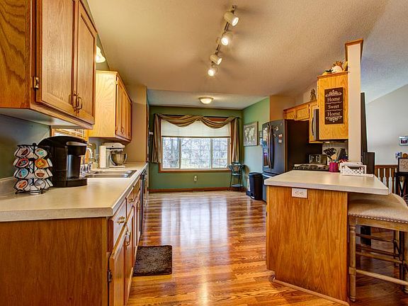 Located on a peaceful street in Monticello sits this beautiful 3-bedroom, 2-bathroom home that features an oversized heated and insulated 3-car garage, a 26x17 deck perfect for entertaining and a huge 14x8 storage shed in the backyard. The main floor vaulted ceilings provide a bright, roomy and inviting atmosphere as you enter the home. The main level features hardwood flooring, an eat-in kitchen with a glass door pantry and two bright windows, a vast open living room, and a dining room with a chandelier and a sliding door to the deck. Down a short hallway are two carpeted bedrooms (each with a walk-in closet and ceiling fan) and a walk-through bathroom with a shower/tub. The lower level features laminate wood floors, a very spacious rec room, a cozy family room with gas fireplace, a spacious bedroom with a walk-in closet, a finished laundry room with a utility closet, a bathroom with a tub/shower & daylight windows throughout for natural lighting. New driveway 2017 and new carpet 2018