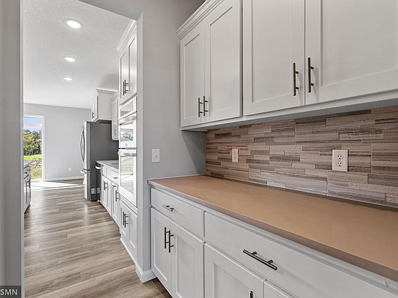 Gorgeous two-story with finished walkout basement on beautiful lot!! The spacious front porch welcomes you into an open floor plan that flows seamlessly thanks to the vaulted ceilings and Luxury Vinyl Plank Wood Floors that run throughout the main level. The front room can be used as formal dining or flex space. The kitchen provides a perfect workspace with a gas cooktop, built in oven, gleaming quartz countertops and tile backsplash, a beautiful butler's pantry and a huge walk in pantry as well. And the sunroom is a great place to enjoy morning coffee on the main level. Gather around the living room fireplace or enjoy the back view from the oversize living room windows. The huge mudroom area includes an oversize built in bench. Rounding out the main floor is a full guest bedroom and full bathroom. The luxury continues upstairs with a spacious loft and owner's suite bedroom complete with walk in shower and soaker tub, 3 additional bedrooms, and 3rd full bath. The finished walkout basement is a HUGE additional space and includes a large 6th bedroom with walk in closet, bathroom #4, the huge family room area with stone fireplace, all walking out to a stunning backyard! Sod/Sprinkler Included!