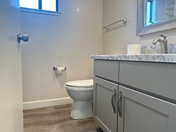 Large corner-lot unitDetached one-car garageAssigned parking spaceLarge master bedroomTwo sinksLaminate flooring