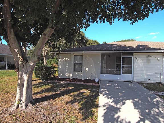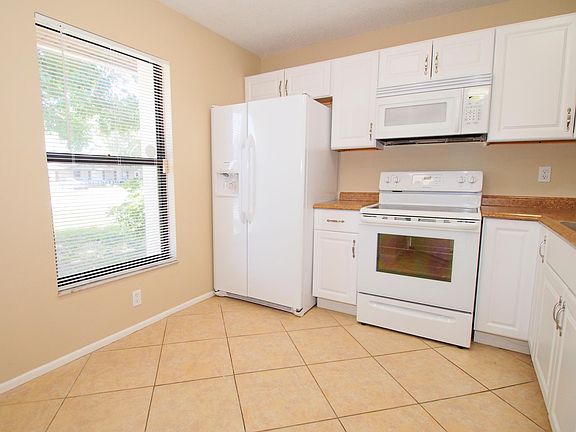 Nicely appointed block-built villa-style home with parking for 4+ vehicles. Located in a quiet cul-de-sac neighborhood. Great commute location * SAFE, FULLY ENCLOSED rear yard. Overlooks conservation area - no rear neighbors! . * Nicely updated kitchen and appliances including flat top range, built-in microwave, dishwasher and side-by refrigerator with ice-maker. Remodeled master and guest bathrooms. FULLY TILED with no carpet anywhere. Fans and blinds throughout. One ensuite bedroom with walk-in closet and sliders to the fully screened lanai. The second bedroom is located right by the guest bathroom for added convenience. Large fully fenced rear yard with mature trees behind. External storage shed. Screened front porch. Great size driveway with parking for 3+ vehicles. No HOA so there are no vehicle restrictions. In-unit private laundry with provided washer and dryer. YARD CARE & PEST CONTROL IS INCLUDED. Annual lease only. Credit, background and rental history checks will be required. Small dog may be negotiable. MULTIPLE LARGE DOGS WILL NOT BE APPROVED. Sorry, no cats. Yard care and pest control are included in the rent. Tenant is responsible for electric, trash & water and internet access