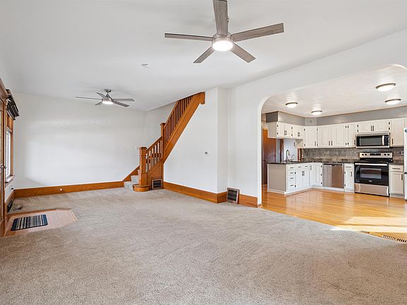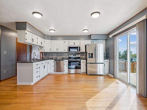 Nicely maintained home on double lot with great wrap around deck and huge open front porch. If you want plenty of garage space check out the spacious 3 car heated garage plus a shed in back. This spacious home has a large living room, a nice eat-in kit with concrete countertops, stainless steel appliances, and pantry, main flr laundry, 4th bedroom on the 3rd flr, updated baths, finished basement & so much more.