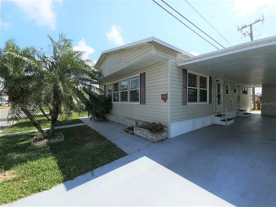 TURN-KEY 2 BED, 2 BATH MOBILE HOME IN 55+ COMMUNITY. This furnished home is ready for you to start enjoying Florida! You will appreciate the gracious floor plan in this well-kept residence. Large living room, enclosed Florida room, completely stocked kitchen with breakfast bar, master bedroom with ample closet space and an en suit bathroom. Roomy guest room. The spacious hall bathroom has a tub/shower, linen closet and plenty of counterspace. Two storage sheds & carport. Air conditioner replaced in 2020. Fair Lane Acres is a land-owned community with low HOA fees of just $134 per month which includes water & sewer. Pet friendly! Community pool and shuffleboard. Close to retail and dining. So Much To Offer!