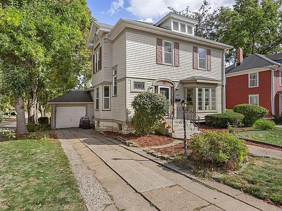 Beautiful and desired Ash Park District boasts this amazing two story. Standing grand, walk up and enter this home with its tiled entry, corner main staircase and large coat closet. Look directly into this gorgeous designer extra large living room. This room has high volume ceilings, bay window, gas fireplace, pocket doors, and amazing original French doors to the screened in sitting porch. Great place to let the dogs out without having to get through your home or cat hang out. The living room is large enough to separate or hold amazing space for the entire family. Great window in front for a Christmas tree! View your large formal dining room with another door to the back staircase! Walk into your updated kitchen with up and down lighting, solid surface countertops, built in breakfast bar, gas stove, new stainless steel dishwasher, white cabinets with crown molding, and large pantry. There is a half bath off the garage entry as well. Up the stairs is a large game closet that would make a great 2nd floor laundry room, homework nook, treadmill room, dog room, or big storage closet. The primary suite is large and has an attached office area for those who work from home and large walk in closet. Make the entire room a closet! This home has stain glass or ornate windows in stairways, and hardwoods. There is a full basement for storage, central air, walk up attic, and attached garage. Large corner fenced in lot, patio and hot tub! You could easily add onto the current garage or add a garage in the back! Great walking neighborhood with mature trees, close to Cornell College, City pool, and ball fields!