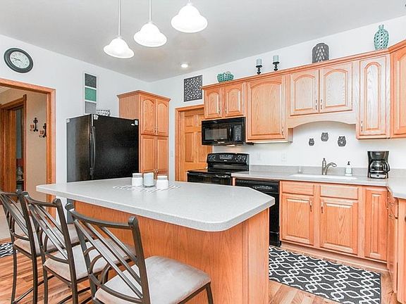 Beautiful and updated. If you like the beauty of the wide trim, baseboards, and pocket doors, but the convenience of modern updates this home is for you! Walk into the beautiful front living room. Fantastic & large formal dining room for family holidays w/ bay window. Main floor master bedroom makes a perfect office, den, or TV room w/ pocket doors. The open kitchen and family room features a beautiful new kitchen & island w/ breakfast bar, new flooring, planning desk,kitchen table dining nook with buit-ins for everydoay eating or arts and crafts! The bathroom has a large jetted tub & both bathrooms have been renovated. Main floor laundry. Wood burning stove/stone fireplace warms you as you relax. The four seasons room makes a perfect drop zone or office! Double decks, one just for grilling come off the back of the home. Bedrooms feature big closets and are generous. Newer roof, mechanicals, & windows make this a must see!