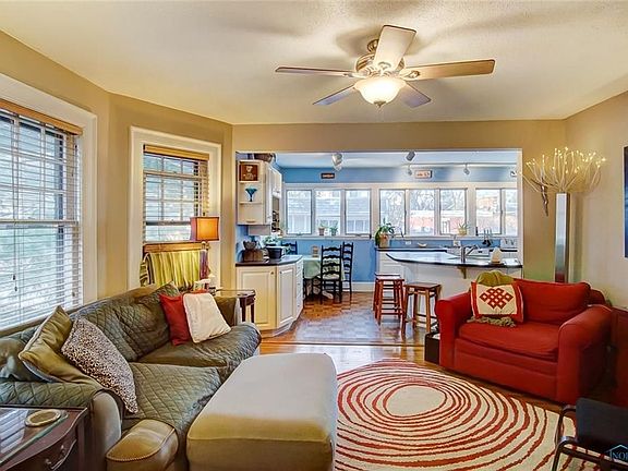 Unique Historic Old West End home featuring bright open kitchen w/corian counter tops that opens into the dining room; 10x12 tiled bathroom w/walk-in shower; decorative fireplace in living room; and den features built-in bookcases. Updates: 40 yr. shingled roof 2004, blown in insulation, front cedar shakes & ext. paint 2017, newer eves.