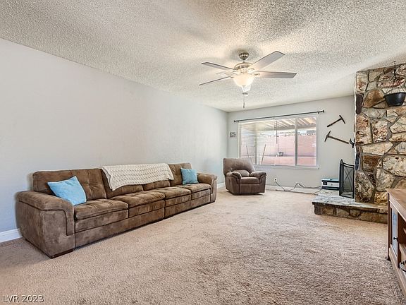 This 3 bedroom, 2 bath single story home located in Summerlin with no HOA offers plenty of features to enjoy! Pull up onto a long driveway with aa fenced front yard.Inside you will find new kitchen countertops, double sided wood burning fireplace for cozy nights indoors plus spacious living and bedrooms for extra comfort. Out back is a covered patio overlooking a large backyard perfect for outdoor entertaining or just to enjoy some fresh air. This house is a must see!