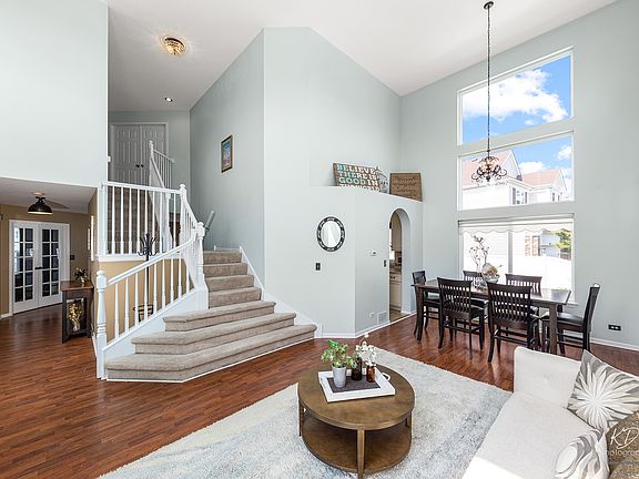 Welcome to Your Dream Home! Step into elegance with this stunning 4-bedroom, 2.5-bath home, featuring a newly installed front door that sets the tone for the exquisite interiors. Situated on a fenced cul-de-sac corner lot, this residence boasts a three-car garage and a spacious layout perfect for modern living. Be captivated by the soaring two-story living and dining rooms, adorned with walls of windows that flood the space with natural light. The updated gourmet eat-in kitchen is a chef's dream, featuring granite countertops, travertine floor, pantry, new light fixtures, and ample cabinet and counter space. The large family room is perfect for gatherings, with its cozy fireplace, expansive windows, and wood laminate flooring. The main floor also includes an updated half bath, a den, and a convenient laundry room. A dual staircase leads to the second floor, where you'll find the sprawling master suite with vaulted ceilings, a walk-in closet, and a luxurious private bath. Three additional bedrooms and a second full bath complete the upstairs. The unfinished basement offers endless possibilities for customization. Entertain in style in the large backyard, featuring a stamped concrete patio & hot tub (not included). This home is loaded with new upgrades, including a dishwasher-2024, all new windows-2022, furnace-2022, AC-2022, new front entry door and new garage doors. Located in the highly sought-after School District 204. You'll enjoy easy access to the freeway, schools, shopping centers, and restaurants. Schedule your showing today!